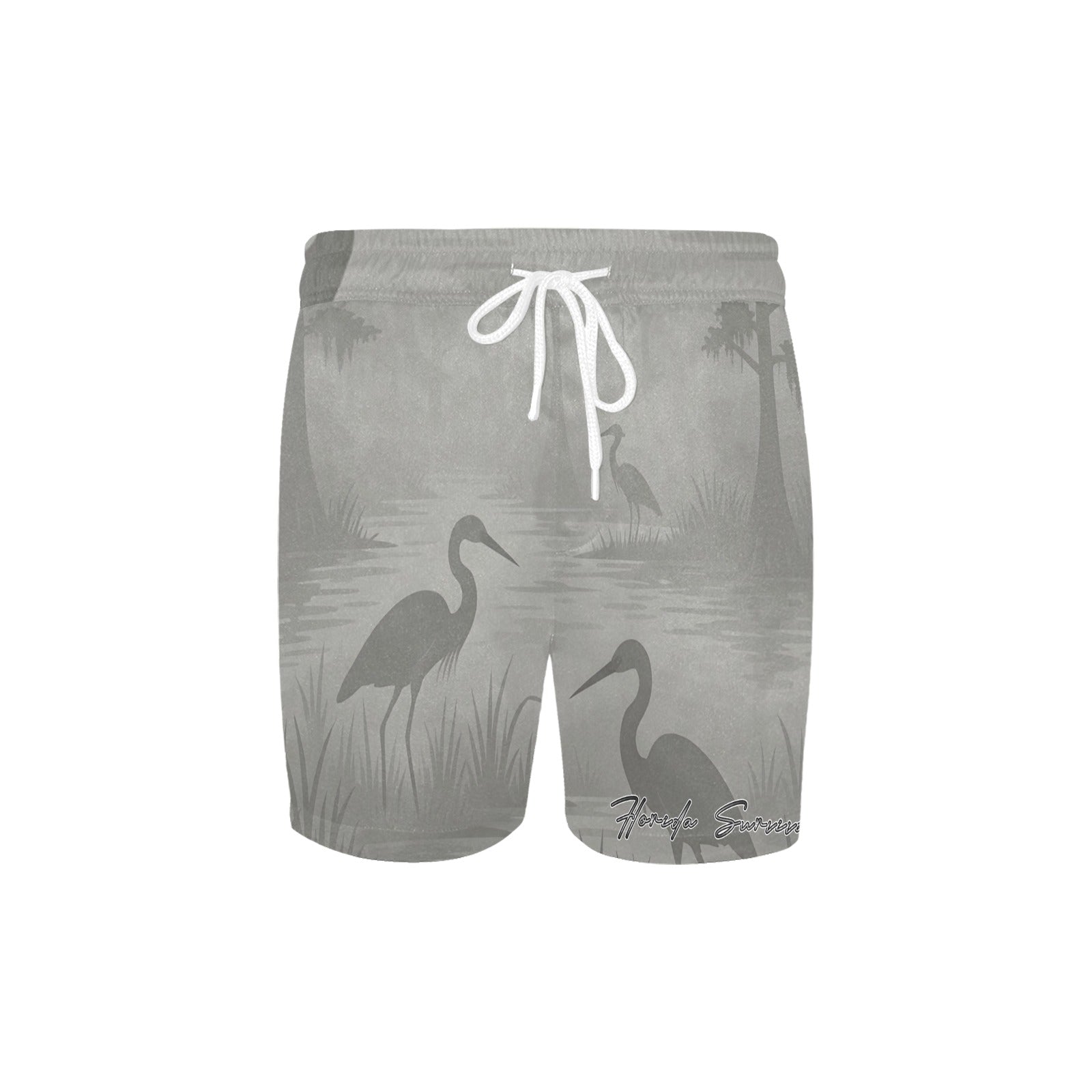 The all-over tonal print features the serene aesthetic of the Everglades—misty cypress silhouettes, resilient sawgrass textures, and wading heron motifs. These shorts deliver rugged performance and quiet style, ready for wherever the Florida wilderness takes you.